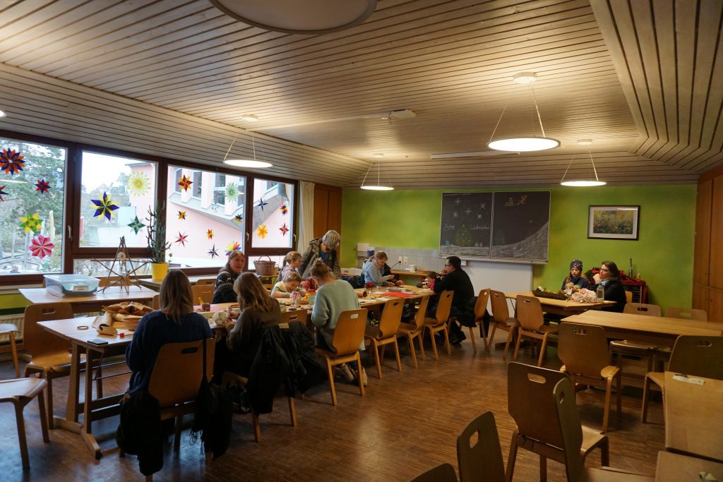 Im Schulhaus und auf dem Schulhof fand ein reges Treiben statt, überall wurde gebastelt, eingekauft, gegessen und getrunken und es waren viele fröhliche Gesichter zu sehen. Man fand zusammen zu Gesprächen, Ehemalige kamen zum Austausch und Eltern, Großeltern und Kinder aus dem aktuellen Schulleben trafen sich für ein frohes Miteinander.