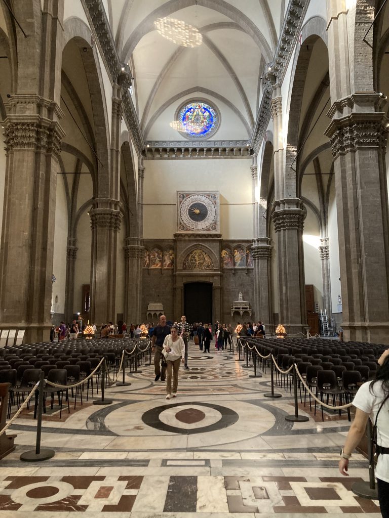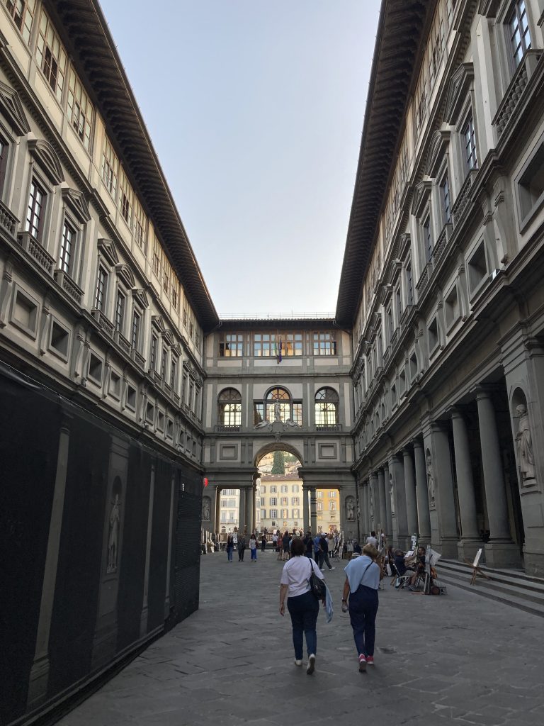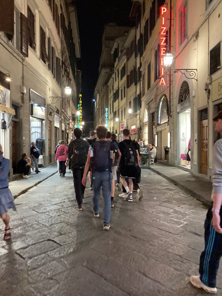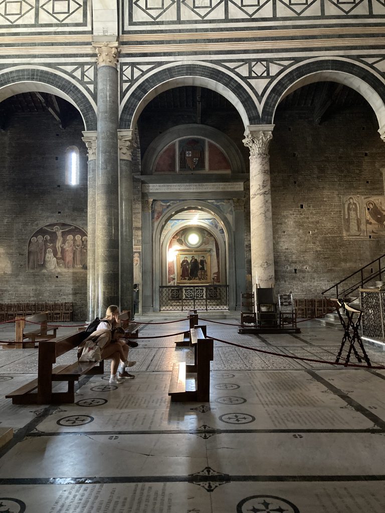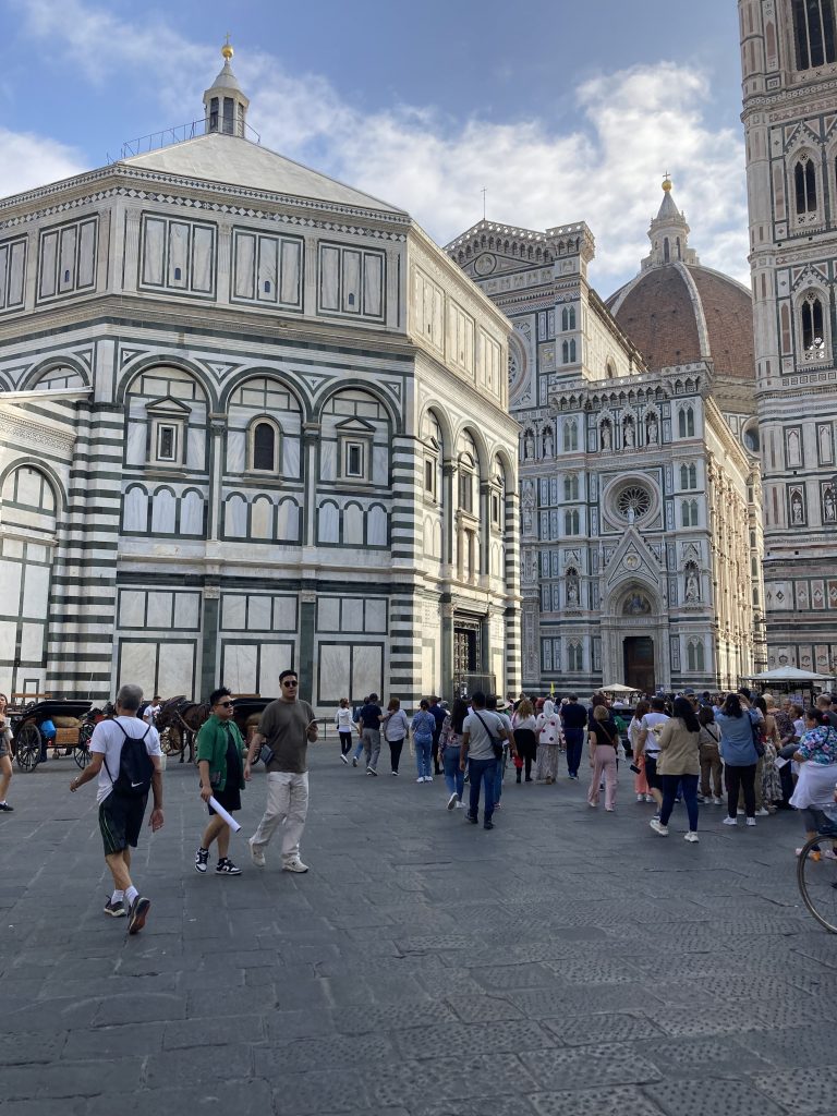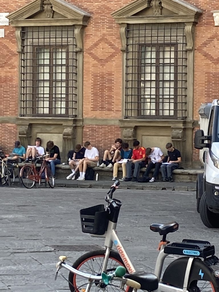 Abgesehen davon ist Florenz aber atemberaubend. Die vielen kleinen Gässchen, die Häuser, und die Klöster und Kirchen sind einfach spannend und schön. Vielleicht erinnerst du dich, dass es eine Kunstfahrt ist, das heißt, wir können von tollen Gebäuden, Skulpturen oder Bildern nicht einfach ein Photo machen. Nein, wir sollen sie abzeichnen! Das ein oder andere Gebäude macht das schon madig, wenn es zwar toll aussieht, aber Säulen, Bögen, Verzierungen und ähnliches hat. Aber was macht man nicht alles für die Kunstlehrerin. Dass sie nebenbei als Museumspädagogin arbeitet, haben wir alle zu spüren bekommen. Einmal angefangen, hält sie so schnell keiner mehr auf. Zugegeben, es ist auch durchaus interessant.