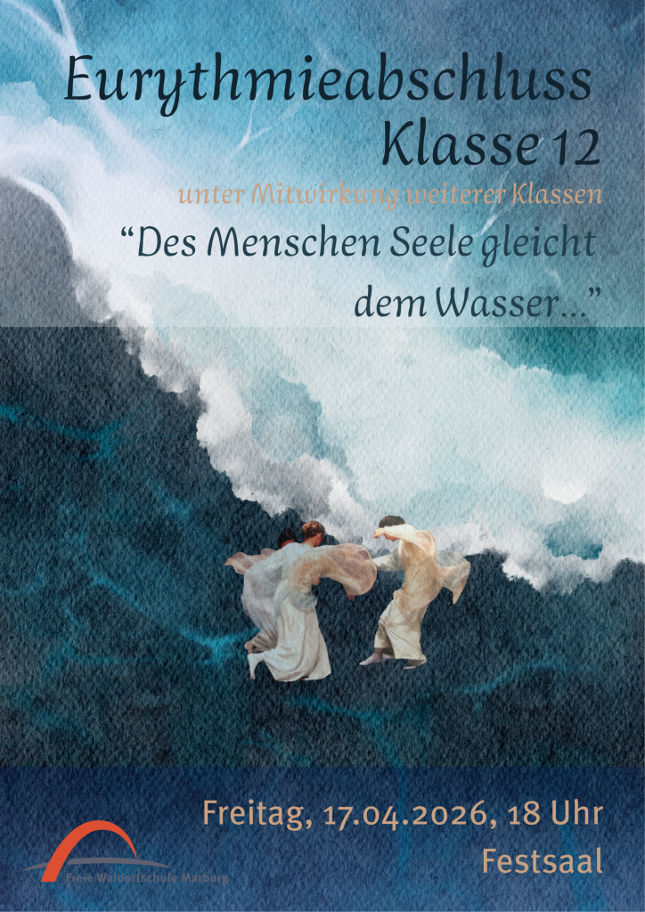 Die Absolventen des Grundkurses Darstellendes Spiel/ Eurythmie aus Klasse 12 zeigen Eurythmie-Choreographien zu Poesie und Musiken mit dem Thema Wasser. Die Ausarbeitungen der klassischen und zeitgenössischen Gedichte und Musiken wurden von dem Fließenden dieses Elements inspiriert. Mittels ihrer Lautgebärden und den komplexen, strömenden Gruppenbewegungen, gelingt es den Darstellenden, die Vielfältigkeit des Wassers ins Sichtbare zu bringen.
