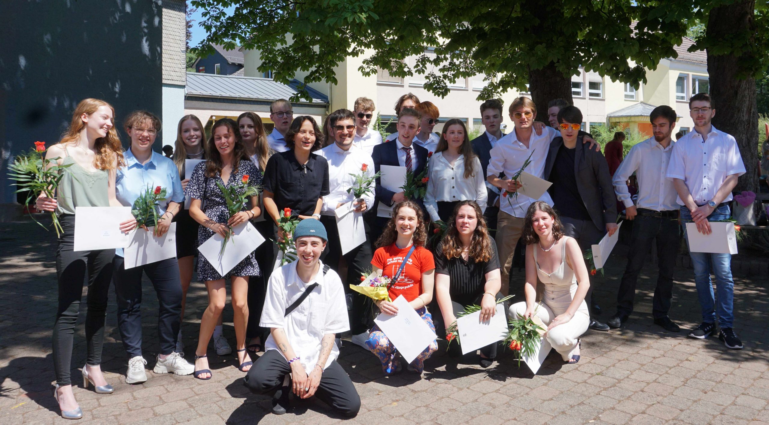 Durch ein Blumentor betraten 25 Absolventen:innen die Bühne